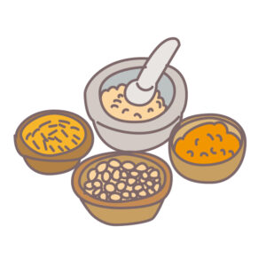 ある時漢方薬の箱の裏を見ると、「内服」と書かれていて「なぜ服なんだろう?」と疑問に思いました。調べてみると、古くは『山海経 (せんがいきょう) 』という秦~漢(紀元前4世紀~3世紀頃、作者は不詳)の書物の中に記載がありました。内容は、植物や鉱物の薬効についてや動物、地理や伝説上の神話まで多岐に渡ります。その中に内服、外服についての記載があり、内服は、体内で薬を効かせて邪気を払うとされていました。また薬草や魔よけ効果のある色の布を衣服のように身にまとい、病気の原因となる邪気を防ぐことを外服と記載されています。この事を知り私達は、手に触れる身近なものの色やデザインにも、心身を癒し整えることができるのではないかと感じました。そう言った想いを大切にして、私達の作品を使って下さる方の生活を健やかで潤いのある暮らしのお役に立てたらと願い制作をしています。