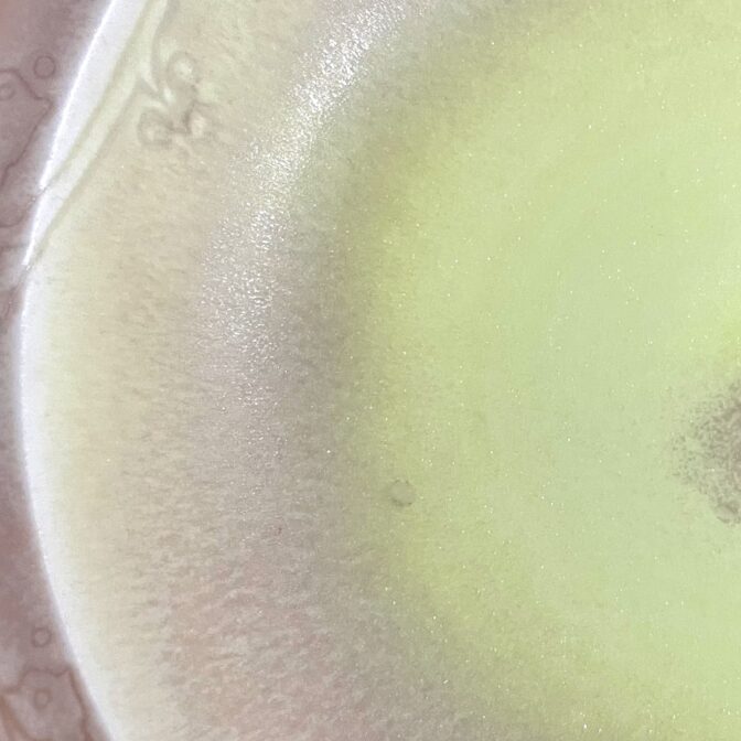 商品写真では少し分かりにくいのですが、表面を良く見るとキラキラとした結晶が見られます。この結晶は1000度を超える高温の窯の中で生まれます。原料の調合や釉薬の厚み、焼成方法等によってその表情はいろいろと変化します。その中でも私たちにとって理想的な優しい輝き方を表現することができました。食後や来客時、仕事の合間などのひとときに、やすらぎを感じていただけたら幸いです。自然光やライトを当てていただきますと、一層キラキラ感をお楽しみいただけます。