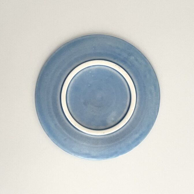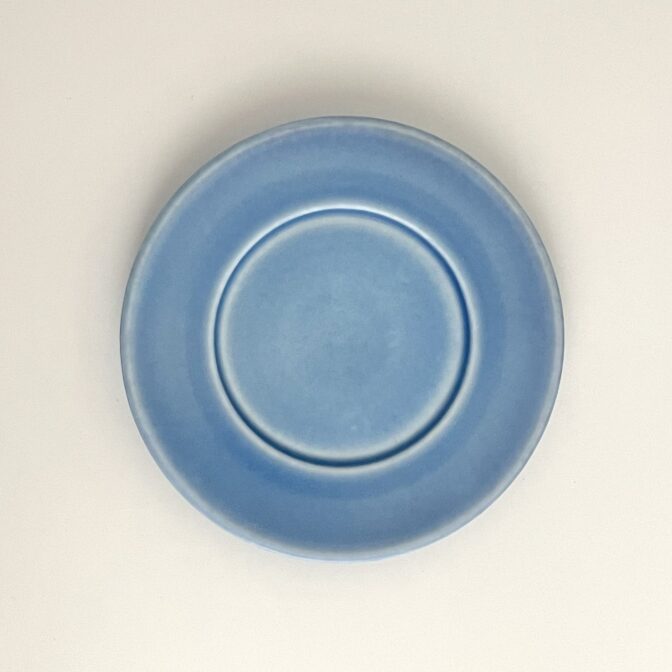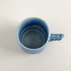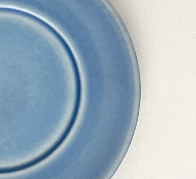 器の表面にかけられた釉薬は一面にどこまでも続く青く透き通る海ような、穏やかな色合いを表現しました。少し艶をおさえたマット調の深い青色で、しっとりとした手触りです。青が持つ力として、気持ちを落ち着かせ集中力を高める効果や、食欲を抑制させる効果があると言われています。