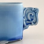 今回ご用意しましたのは、レギュラーカップとデミタスカップの中間の大きさで、容量が100~120cc前後のコーヒーカップです。品よく飲みたい方やたっぷりはいらないけど、デミダスカップほど少量ではもの足りないという方にぴったりです。取っ手は紋章をイメージした模様が施してあります。ソーサーは中央にくぼみがあり、滑りにくいデザインになっています。セット使いだけでなく、その日の気分で様々な使い方を楽しんでください。